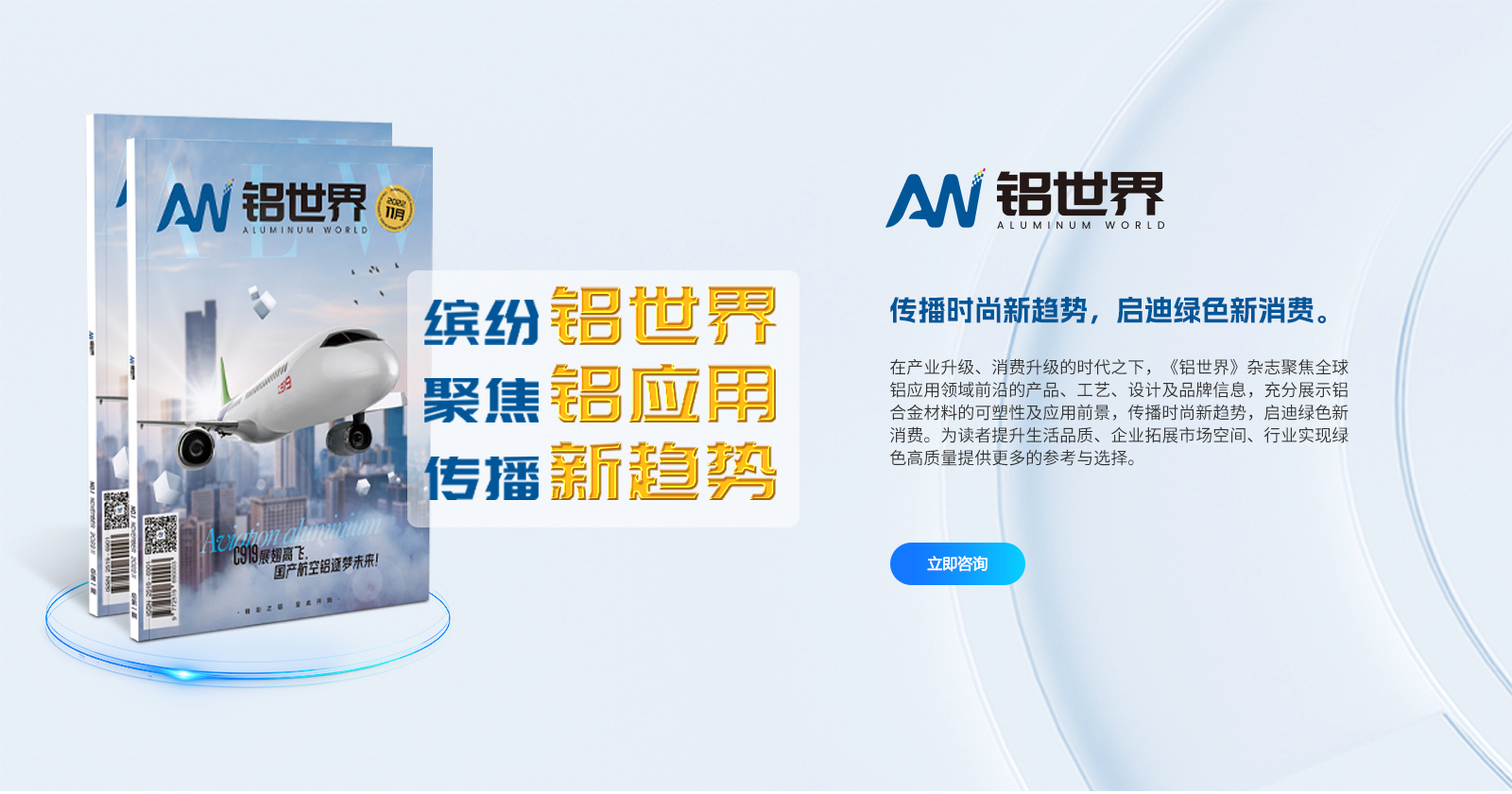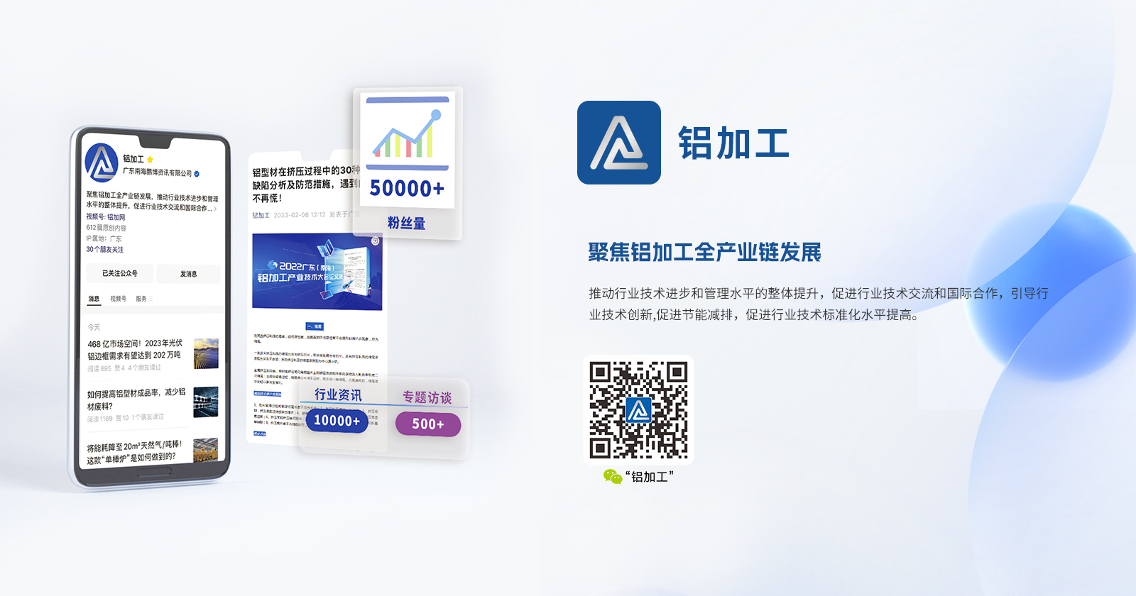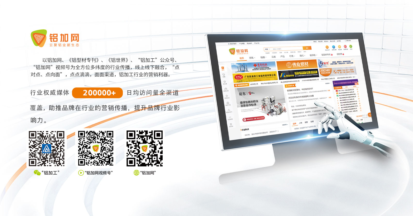 鋁加網(wǎng)(www.albiz.cn)是聞名鋁加工行業(yè)的垂直門(mén)戶網(wǎng)站,云聚鋁業(yè)新生態(tài),構(gòu)建鋁業(yè)新場(chǎng)景,以albiz.cn 網(wǎng)站為核心,以移動(dòng)云端、鋁加工微信、鋁加網(wǎng)視頻號(hào)、《鋁型材專刊》和《鋁世界》雜志為載體,成為了鋁加工行業(yè)資訊和精準(zhǔn)傳播的首選傳媒。鋁加網(wǎng),采集和發(fā)布全行業(yè)信息資訊,提供線上展覽、在線直播、短視頻、品牌策劃、品牌運(yùn)營(yíng)、品牌傳播等全方位的專業(yè)服務(wù)。